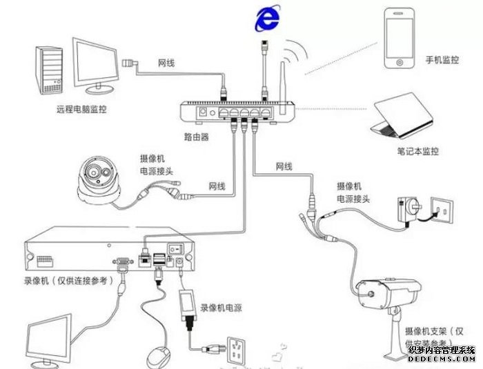 假設(shè)四臺攝像機到監(jiān)控距離少于40米,每臺攝像機可單獨布RVV2×0.5電源線到監(jiān)控主機并用小型開關(guān)電源供電;如果4個半球或者槍機,也可以選擇2個12V1A電源或者1個12V2A電源,4個攝像機采用并聯(lián)取電的方式,比較節(jié)省線材;
